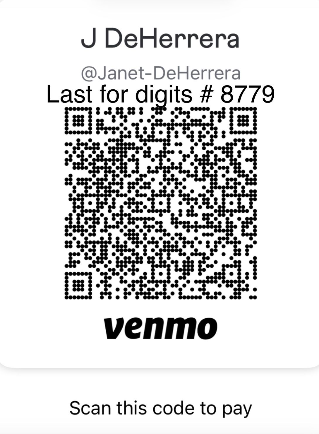Venmo - @Janet-DeHerrera